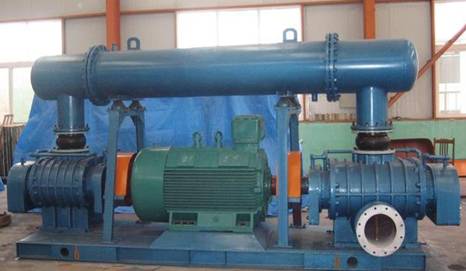 HRD系列雙級高壓羅茨鼓風機是我公司吸收國外先進技術生產的一種雙級高壓羅茨鼓風機,它是由兩臺HR系列標準羅茨鼓風機串聯而成。當氣體進入第一級風機升壓后,經過中間冷卻器將氣體溫度冷卻至40℃以下,然后進入二級風機繼續升壓,機組最高升壓可達198kPa。兩級風機的主機由同一臺電機通過皮帶傳動或雙軸伸電機直聯傳動。